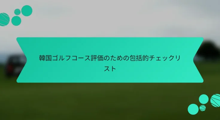 韓国のゴルフコースを評価するための重要な基準には、コースのデザイン、グリーンやフェアウェイの質、利用可能なアメニティ、アクセスの良さ、価格オプションが含まれます。これらの要素は全体的なゴルフ体験に大きく影響し、異なるコース間で大きく異なることがあります。