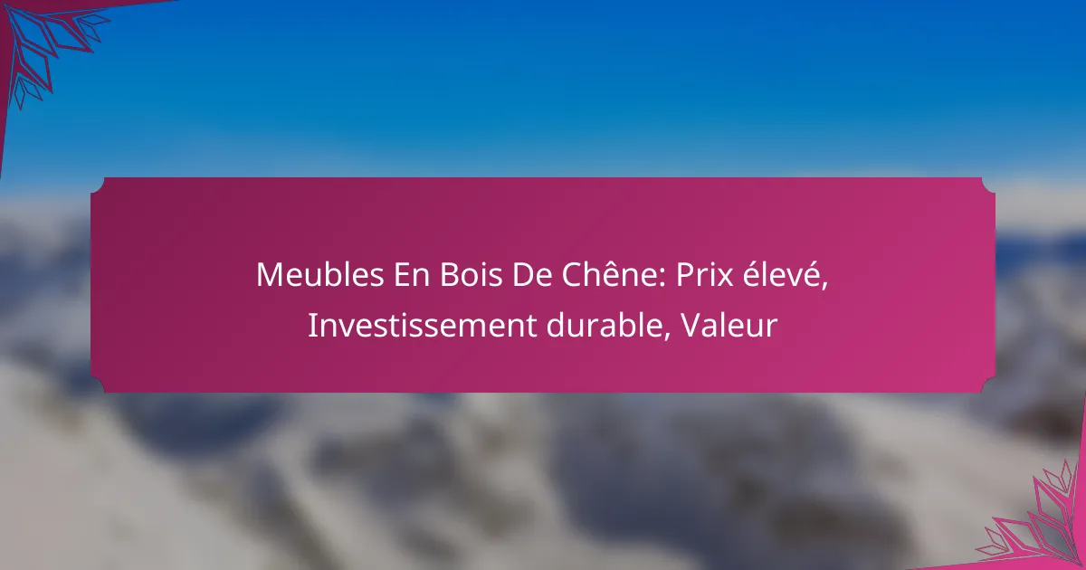 Les meubles en bois de chêne sont un choix de prédilection pour ceux qui recherchent à la fois durabilité et élégance. Bien que leur prix puisse sembler élevé, cet investissement se traduit par une longévité et une valeur ajoutée à votre intérieur. En optant pour des pièces de qualité, vous assurez non seulement un style intemporel, mais également une résistance à l’usure qui en fait un choix judicieux sur le long terme.